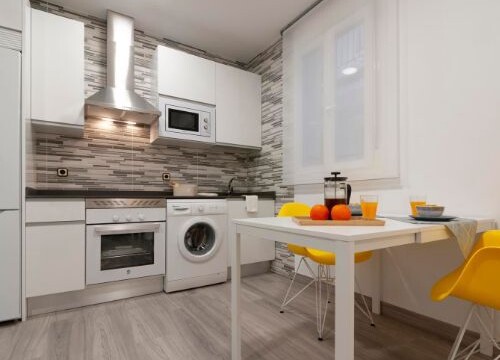 Muy cerca del estadio Santiago Bernabéu, cuenta con una moderna y espectacular cocina, totalmente equipada con electrodomésticos de alta calidad, posee microondas, frigorífico, vitrocerámica y lavadora; todo a estrenar.