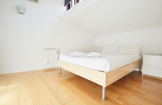 Llegando a la habitación principal, verás que tiene una cama matrimonial y su armario empotrado bastante grande para almacenar lo que desees.